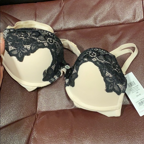 Nude push up bra with black lace.. Sized for Australia. In America it's sized as 34B