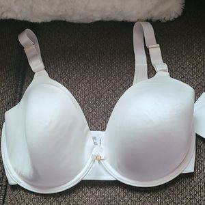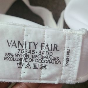 White beautiful Vanity Fair bra. Size 34DD. Bow detail in the front. Also covers ant back issues.