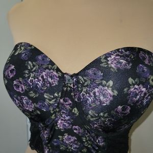 Black Heart 🖤 bra size 34DD black with purple flowers a sexy design strapless but you can use it with double straps on each side, straps not included. color may vary due to lighting.