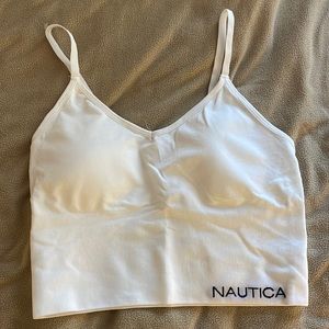 Never worn. White sporty bra. Fits more like a medium