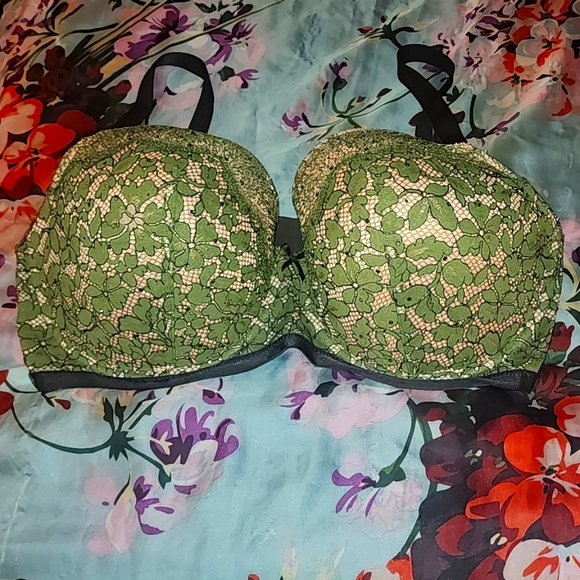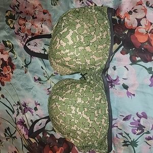 Victoria secret bra worn once overlay green lace with tiny rimstones over each cup
