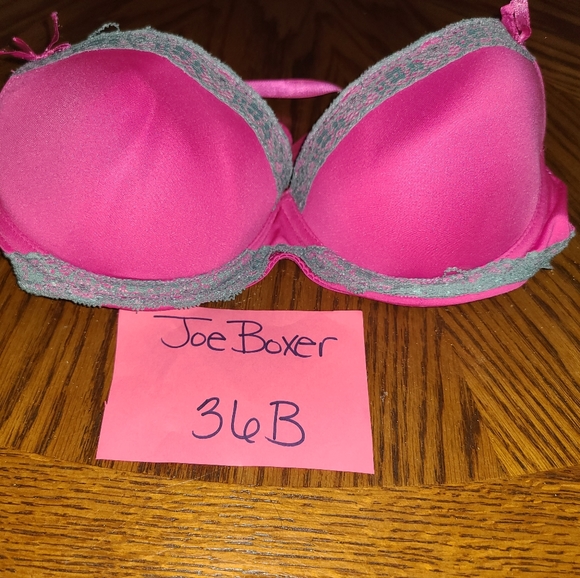 Exterior Details: this bra is padded, it has a standard (silky/satiny) fusha bra as the underlying for the grey sheer lace on top and bottom of th cups. It does have wires and adjustable straps;