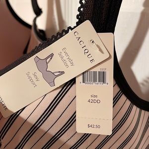 Lightly padded. Blush pink w black stripes and lace trim. 4-hook closure