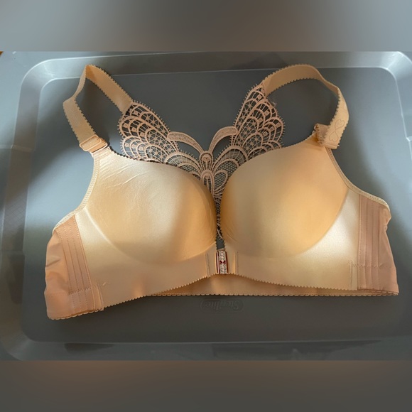 Pink bra with butterfly design on back