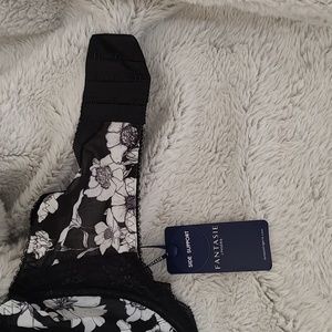 Sheer black bra with white flowers and lace on the top. It has thicker straps for more comfort. New with tags.