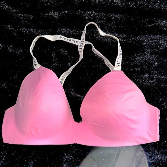Victoria Secret Pink Bra, soft texture, crisscross straps with logo, 34C light pink, comfortable