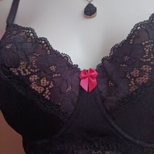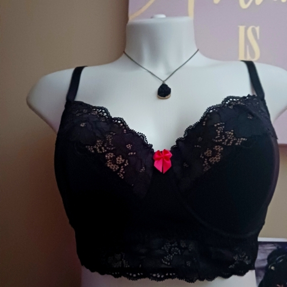long line bra ,with pink bow and lace detail. cute and sexy. New w tags:) smoke free home.