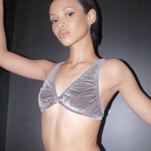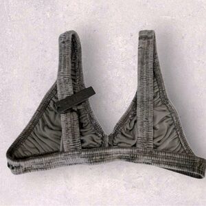 - Super flattering barely-there triangle bralette made of soft stretchy plush velvet.