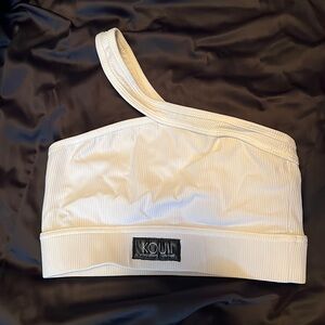 One strap bra white, ribbed single cross-chest strap