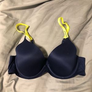 Bra Bundle. Both are sizes 34B and lightly lined. Lightly worn. The navy blue one is Arie and the Black lace one is Pink by Victoria Secret.