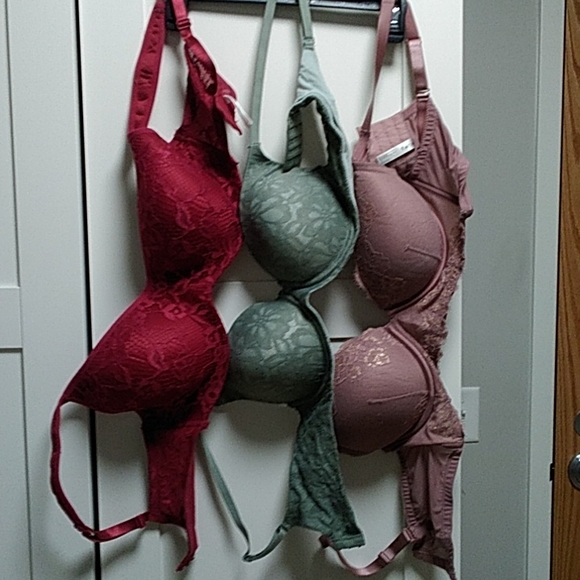 Bundle of 3 size 36D-38D bras Adrienne Vittadini Studio (crimson) 38D-NWOT, No Boundaries (green) 36D-used minimal wear and Ambrielle Plunge (pink) 38D-used condition with signs of wear