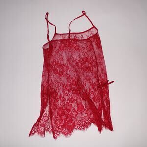 Bra N Things Red Semi Sheer Lace With Eyelash Lace And Side Slits Size 8