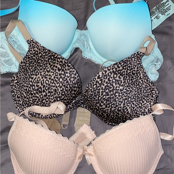 Experience comfort and style with this chic bra set. Featuring a bold leopard print and a classic pinkish beige , and blue ombré design, these bras are perfect for any occasion.