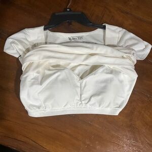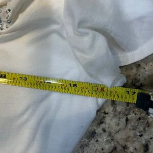 Bra Tops White Scoopneck Draped Capsleeve Top w Rhinestone Embellishments Sz M