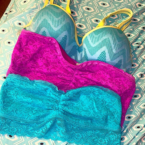 The two bralettes are from aerie and the Sports bra is from Walmart . Nothing is new but all is in good condition