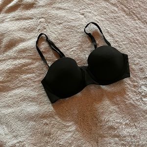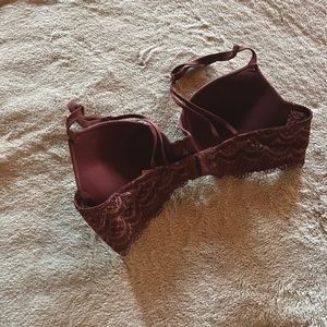Three 34B bras: one green lace, one black balconette, one burgundy with lace accents. All only worn a few times—excellent used condition.