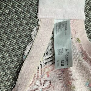 Elegant blue bra with floral embroidery. Features adjustable straps for comfort.