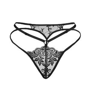 Exotic embroidered harness bra & g-string set in black color
