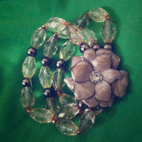 Stretch bracelet with beige flower design. This neutral color goes with anything!