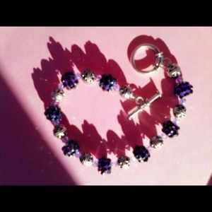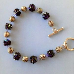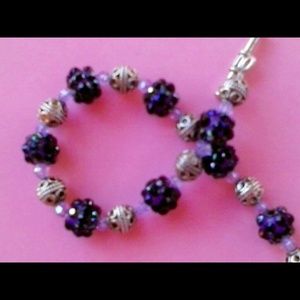 Dark purple and silver toned beads, with light purple Swarovski crystals in between.