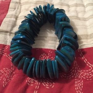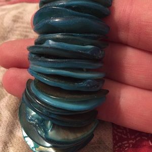 Cute blue shell like bracelet. Lightly worn. It stretches and comfy to wear.