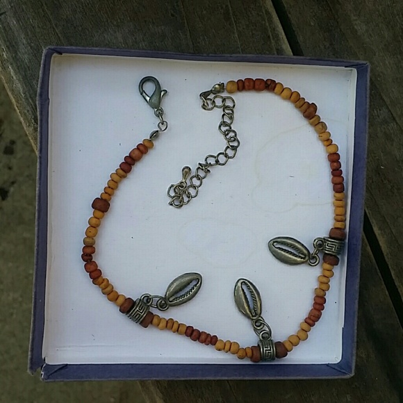 Metal shell shaped beads among wooden beads. Great for that just went to the beach look!