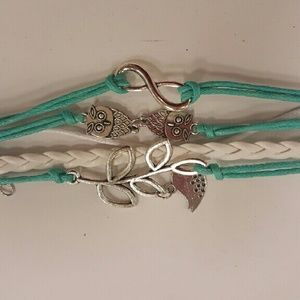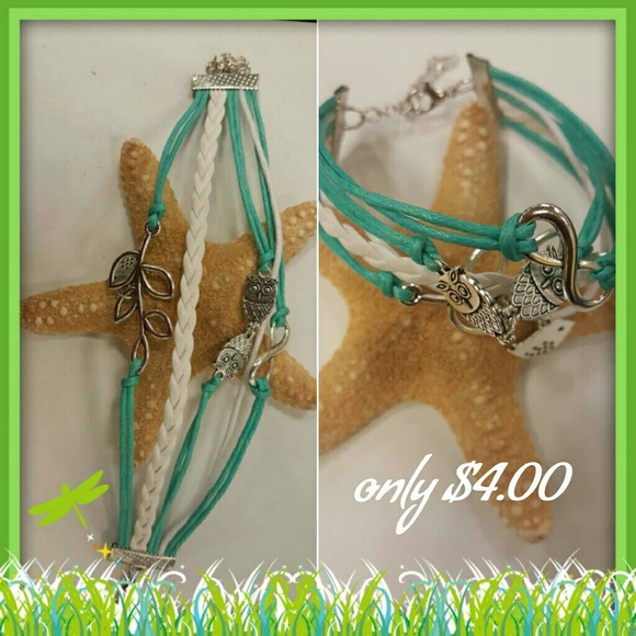 With a owl, infinity and a leaf with a bird. This bracelet is a real big hit with any age. At only $4 it is a must have.