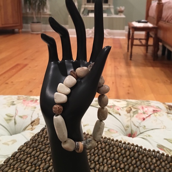 Sterling silver, African opal, white Howlite with Coconut shell and Mahogany seed stretch bracelet
