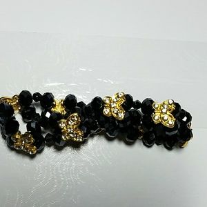 Black Swarovski stretch bracelet with gold Swarovski encrusted butterflies in between