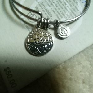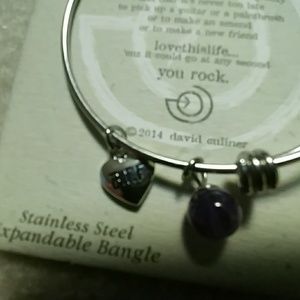 Trendy, unopened bracelet. Sisters charm, B.F.F. charm. Stainless steel expandable bangle