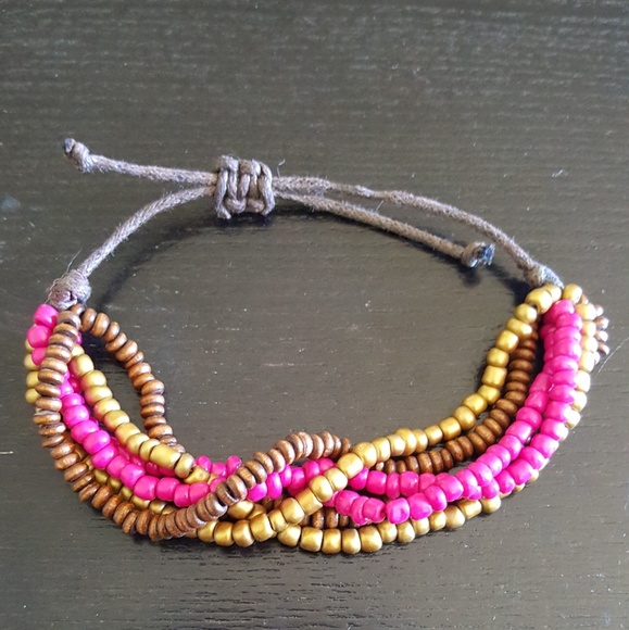 Brown, pink and gold bread adjustable bracelet