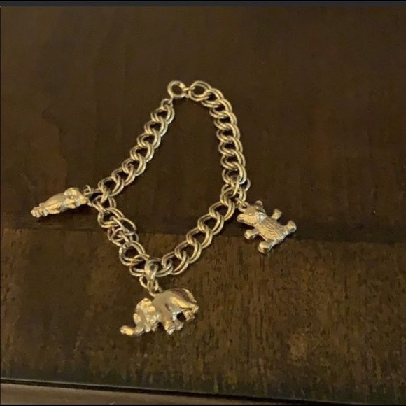 Bracelet with zoo animals dangling. Animals are owl, bear, and elephant