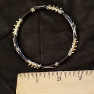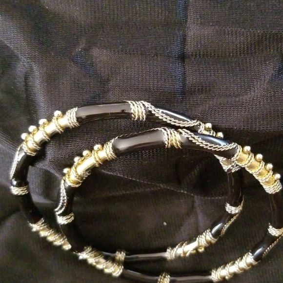 Black and gold bangle bracelet. Intricate accent. Can be worn separate, together or pair with plain gold bangle.