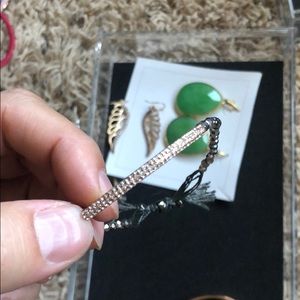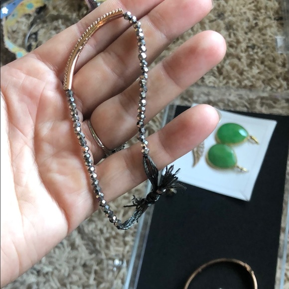 Hemetite , rose gold and crystals within the rose gold detail , draw string