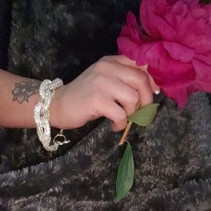 Beautiful embellished silver oversized chain link bracelet. Never worn.