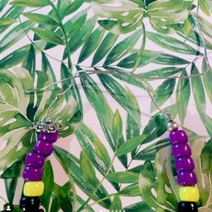 A, kids, bracelet!! The color is, black, yellow, and purple!! The ends are beads also, they are a metal.