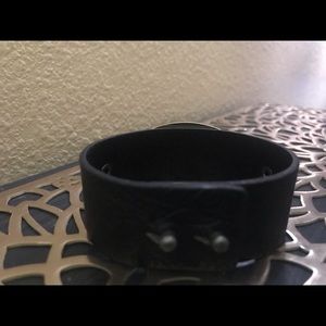 Color: Black floral design print New Tagged and packaged Two hole adjustments Faux leather
