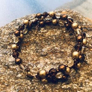 Triple strand bracelet with copper, gold and Chrystal beads