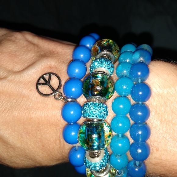4 beaded Vintage bracelet set with peace sign.Sold together.