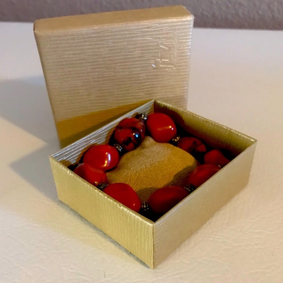 Red jasper stones in a stretch bracelet with dust bag and box.