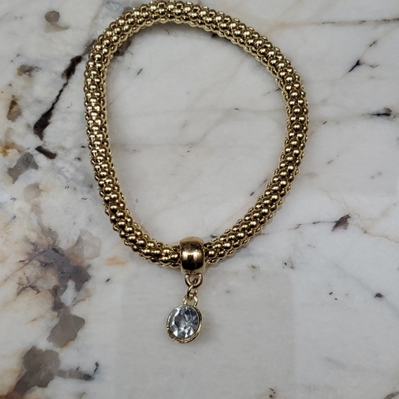 Gold plated stretch bracelet with a CZ stones that reflect a lot of different colors depending on lighting and surroundings.