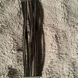 Black silver wrap around magnetic bracelet has small gem stones. Easy to put on fits most wrist.