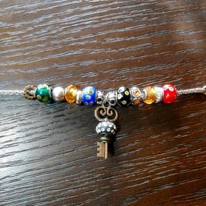 beautiful beaded bracelet.multi colored.beautiful charms.clasp will need a new ring possibly