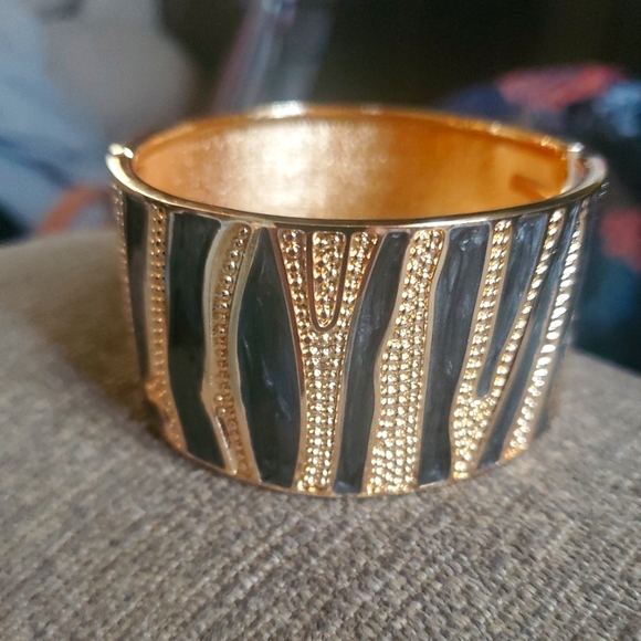 Vintage handmade dripping oil spill bracelet. Black and gold