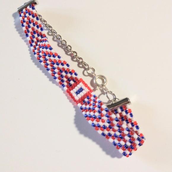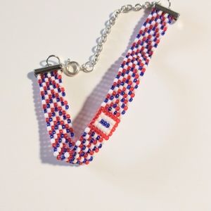 Hand weaved 8 inch red white and blue buckle bracelet