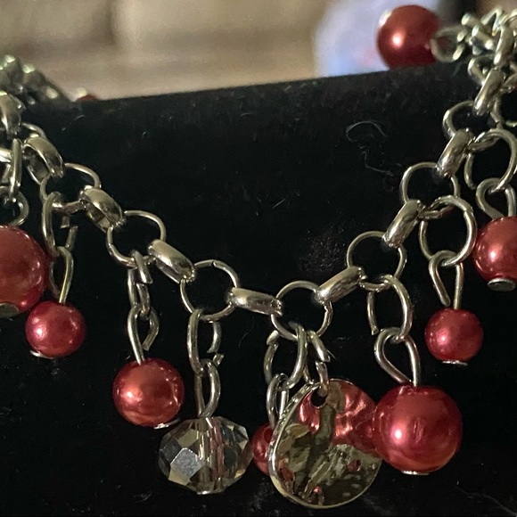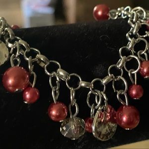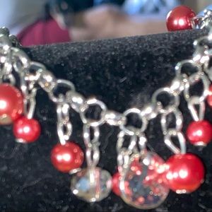 Dark Red & Silver Beaded Bracelet❣️🤍