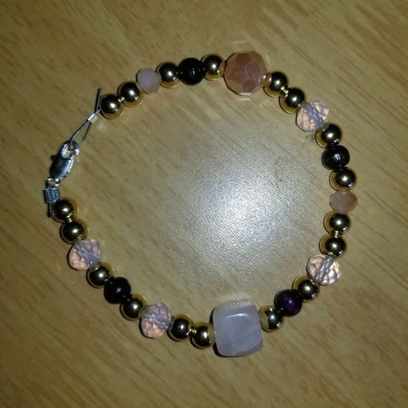 beaded bracelet with a pink stone and pink beads, 7.5inches long