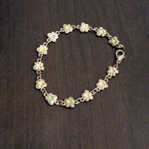 Silver Butterflies Bracelet With Multi Colored Painted Enamel Costume Jewelry 7" Long Excellent Vintage Condition No Chips Or Cracks B-030