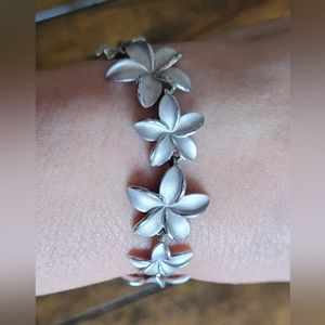 This is a beautiful bracelet! Plumeria flowers connected made of sterling silver. Reminds me of Hawai'i.