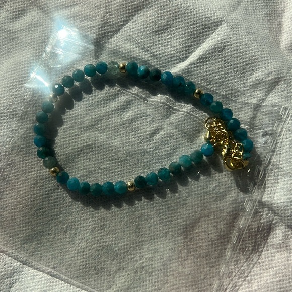 New genuine Apatite and 18k plated over brass beaded bracelet. Extender attached.
